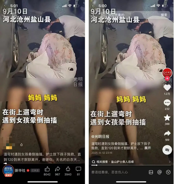 當(dāng)河北鹽山縣千童大街傳來呼救聲,一名女子突然倒地,情況危急。鹽山縣人民醫(yī)院護(hù)士霍平,當(dāng)時(shí)正抱著兩歲女兒與家人散步,聽到呼救后,她毫不猶豫沖向現(xiàn)場(chǎng)。