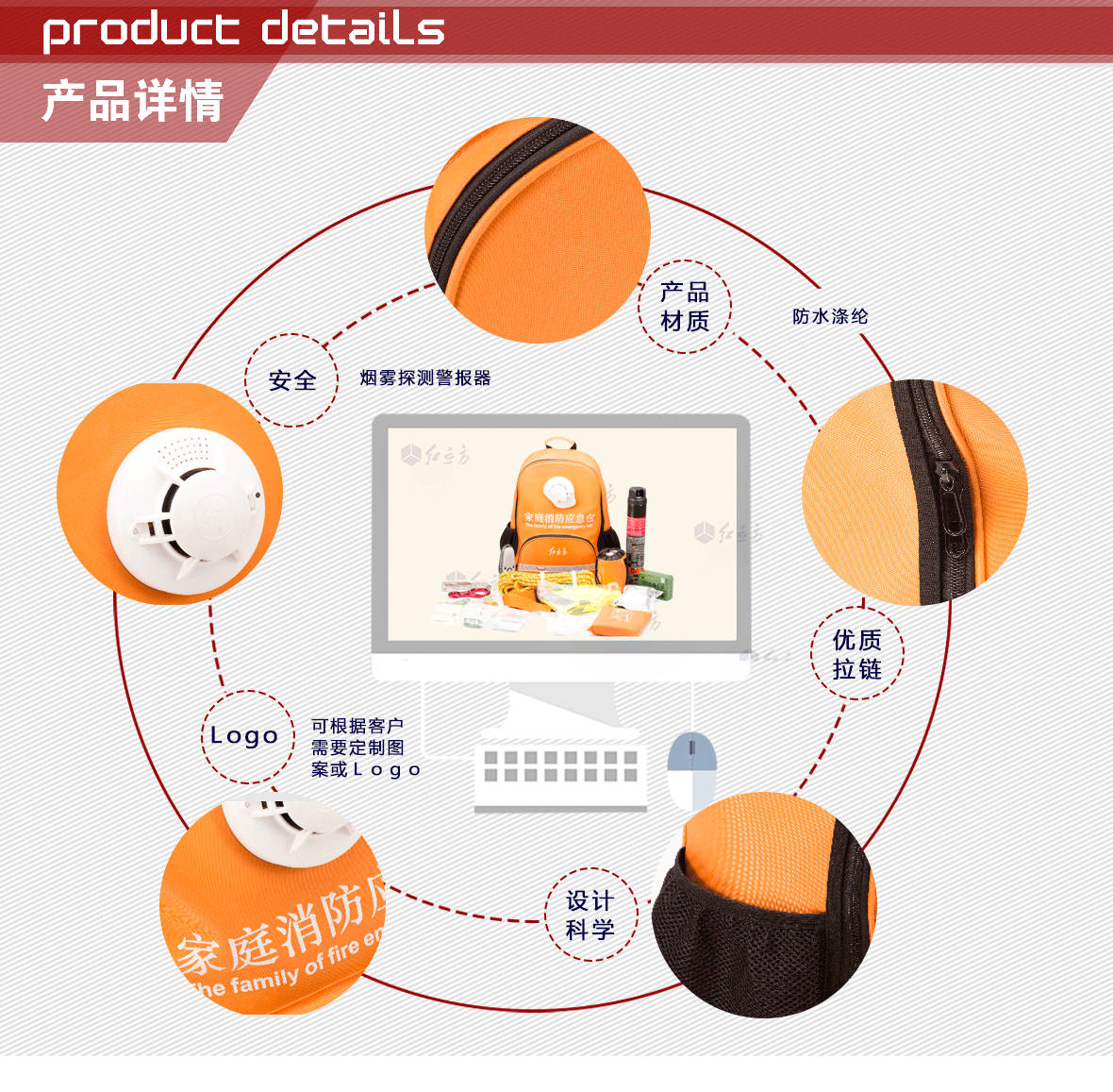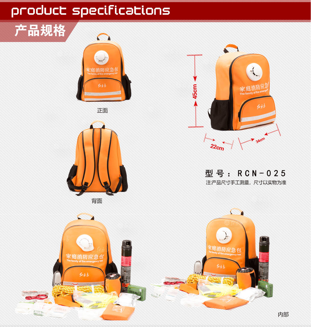 型號:RCN-025家庭應急包 | 外包材質:600D滌綸 | 顏色:橘黃 | ||||||