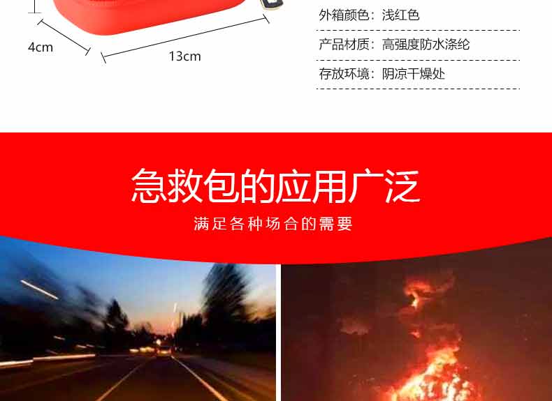 型號:RCH-038急救包 | 材質:高強度防水滌綸 | 顏色:橘黃 | ||||||