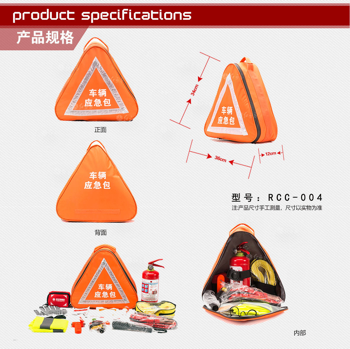 型號:RCC-004車載三角標志應急包 | 外包材質:滌綸 | 顏色:黃色 | ||||||